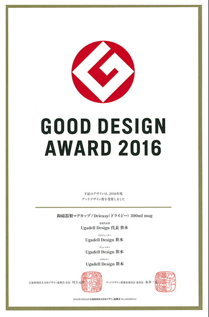2016年に、審査委員に「(水切り機能は)陶器の歴史から考えると革新的なアイデアだ」という評価を得て、受賞となりました。